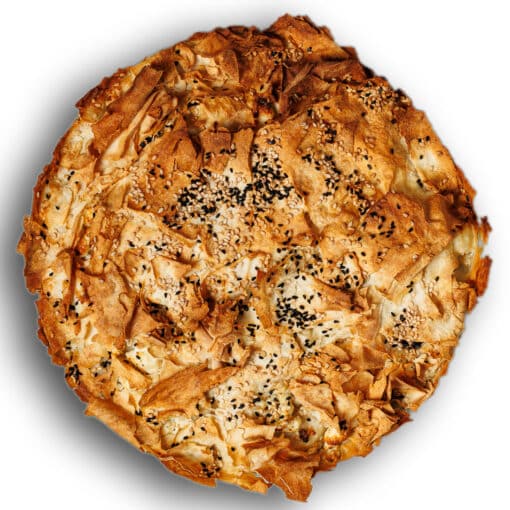Ανακαλύψτε μια εκλεκτή, παραδοσιακή τυρόπιτα εμπνευσμένη από τη γαστρονομική παράδοση της Λήμνου. Το τραγανό φύλλο γιουφκά συνδυάζεται ιδανικά με μια πλούσια, κρεμώδη γέμιση από εκλεκτά ελληνικά τυριά, δημιουργώντας μια αυθεντική γευστική εμπειρία.